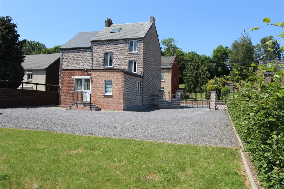 AGREABLE MAISON VILLAGEOISE en parfait état d’entretien, composée au rez-de-chaussée d’un hall d’entrée, salon, salle-à-manger, bureau, cuisine équipée et meublée (table de cuisson vitro-céramique, four, hotte, évier), buanderie/toilette, spacieux garage avec espace bricolage. Au 1er étage : hall de nuit, 2 chambres et salle de bains récente (douche, meuble évier, toilette). Au 2ème étage : 2 chambres. Caves en sous-sol, chauffage central mazout, châssis PVC double vitrage (volets au rez), électricité bi-horaire, …. Jardin/pelouse, terrasse ensoleillée, emplacements de parking, …